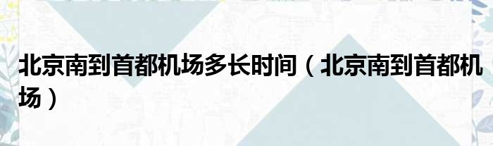大家好,今天小六子来为大家解答以下的问题,关于北京南到首都机场多长时间,北京南到首都机场这个很多人还不知道,现在让我们一起来看看吧!