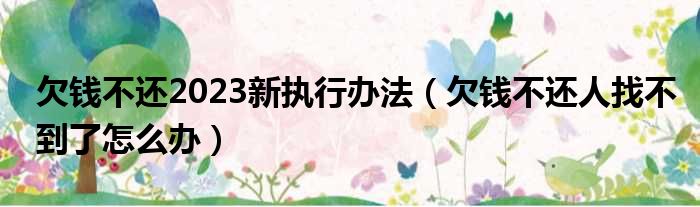 大家好,今天小六子来为大家解答以下的问题,关于欠钱不还2023新执行办法,欠钱不还人找不到了怎么办这个很多人还不知道,现在让我们一起来看看吧!