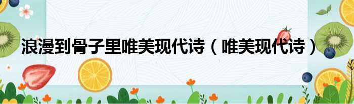 大家好,今天小六子来为大家解答以下的问题,关于浪漫到骨子里唯美现代诗,唯美现代诗这个很多人还不知道,现在让我们一起来看看吧!