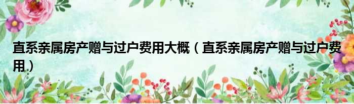 大家好,今天小六子来为大家解答以下的问题,关于直系亲属房产赠与过户费用大概,直系亲属房产赠与过户费用这个很多人还不知道,现在让我们一起来看看吧!