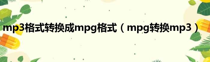 大家好,今天小六子来为大家解答以下的问题,关于mp3格式转换成mpg格式,mpg转换mp3这个很多人还不知道,现在让我们一起来看看吧!