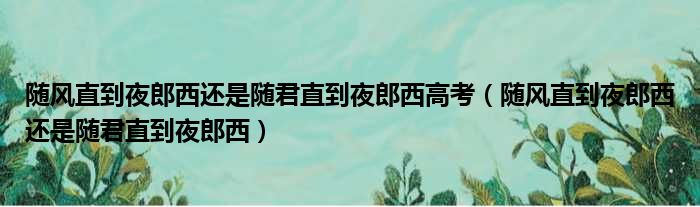 大家好,今天小六子来为大家解答以下的问题,关于随风直到夜郎西还是随君直到夜郎西高考,随风直到夜郎西还是随君直到夜郎西这个很多人还不知道,现在让我们一起来看看吧!