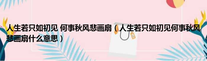 大家好,今天小六子来为大家解答以下的问题,关于人生若只如初见 何事秋风悲画扇,人生若只如初见何事秋风悲画扇什么意思这个很多人还不知道,现在让我们一起来看看吧!