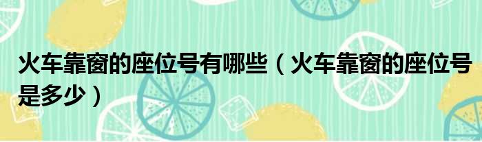 大家好,今天小六子来为大家解答以下的问题,关于火车靠窗的座位号有哪些,火车靠窗的座位号是多少这个很多人还不知道,现在让我们一起来看看吧!
