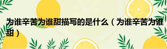 大家好,今天小六子来为大家解答以下的问题,关于为谁辛苦为谁甜描写的是什么,为谁辛苦为谁甜这个很多人还不知道,现在让我们一起来看看吧!