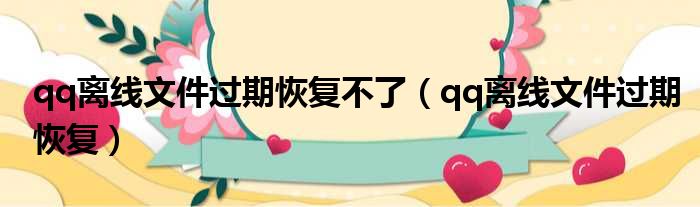 大家好,今天小六子来为大家解答以下的问题,关于qq离线文件过期恢复不了,qq离线文件过期恢复这个很多人还不知道,现在让我们一起来看看吧!
