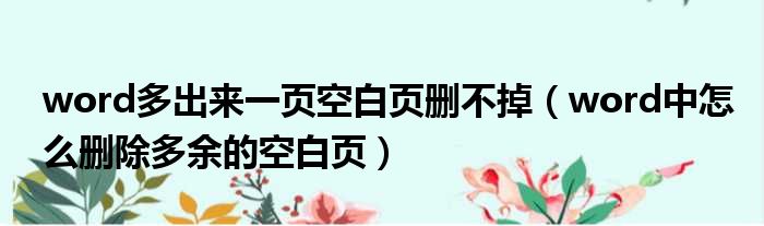 大家好,今天小六子来为大家解答以下的问题,关于word多出来一页空白页删不掉,word中怎么删除多余的空白页这个很多人还不知道,现在让我们一起来看看吧!
