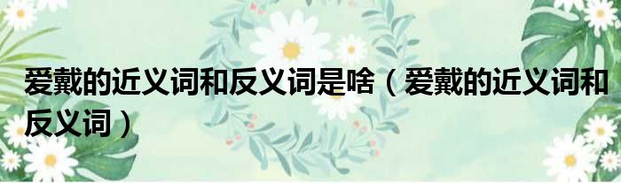 大家好,今天小六子来为大家解答以下的问题,关于爱戴的近义词和反义词是啥,爱戴的近义词和反义词这个很多人还不知道,现在让我们一起来看看吧!