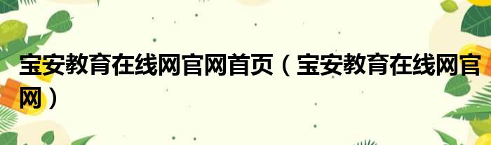 大家好,今天小六子来为大家解答以下的问题,关于宝安教育在线网官网首页,宝安教育在线网官网这个很多人还不知道,现在让我们一起来看看吧!