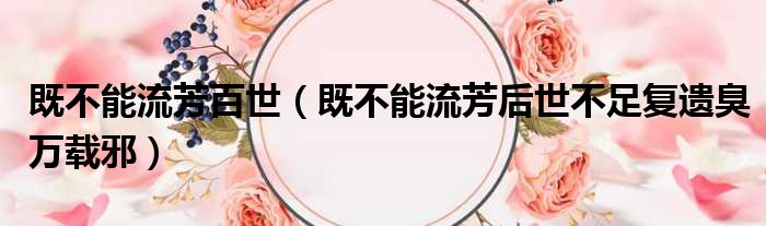 既不能流芳百世 既不能流芳后世不足复遗臭万载邪 网络整理 经验 2023-07-10 16:09:23 大家好,今天小六子来为大家解答以下的问题,关于既不能流芳百世,既不能流芳后世不足复遗臭万载邪这个很多人还不知道,现在让我们一起来看看吧!1、大丈夫就算不能在后世留下美好的名声,也不能留下不好的名声让人唾骂万载.。本文分享完毕,希望对你有所帮助。 声明:免责声明:本文来源网友投稿及网络整合仅代表文章作者的个人观点,与本站无关。其原创性、真实性以及文中陈述文字和内容未经本站证实,对本文以及其中全部或者部分内容文字的真实性、完整性和原创性本站不作任何保证或承诺,请读者仅作参考,并自行核实相关内容。投诉邮箱:1765130767@qq.com。 本文地址:https://www.anfu123.com/jingyan/115264.html