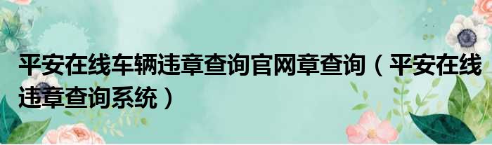 大家好,今天小六子来为大家解答以下的问题,关于平安在线车辆违章查询官网章查询,平安在线违章查询系统这个很多人还不知道,现在让我们一起来看看吧!