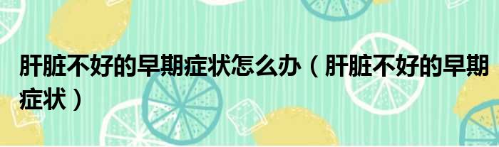 大家好,今天小六子来为大家解答以下的问题,关于肝脏不好的早期症状怎么办,肝脏不好的早期症状这个很多人还不知道,现在让我们一起来看看吧!