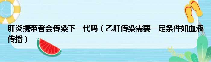 大家好,今天小六子来为大家解答以下的问题,关于肝炎携带者会传染下一代吗,乙肝传染需要一定条件如血液传播这个很多人还不知道,现在让我们一起来看看吧!