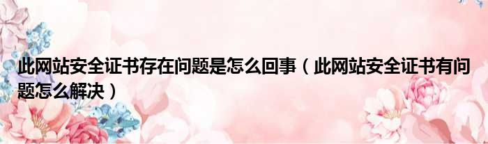 1、此网站的安全证书有问题怎么办?很多使用各种浏览器打开网上银行、网上商城等网站的用户都有很关心这个问题,因为在日常使用中,他们都有碰到网站提示“此网站的安全证书有问题”,现在,小编收集了相关的信息,专为这些用户提供关于网站安全证书有问题如何解决的方法。