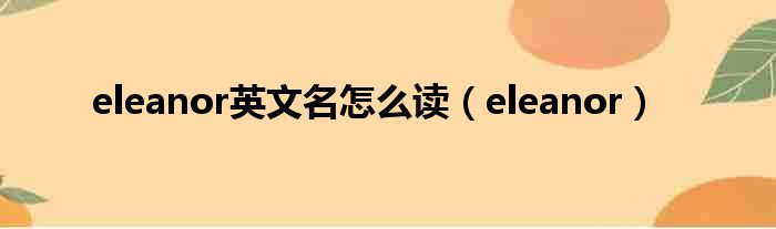 大家好,今天小六子来为大家解答以下的问题,关于eleanor英文名怎么读,eleanor这个很多人还不知道,现在让我们一起来看看吧!
