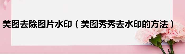 大家好,今天小六子来为大家解答以下的问题,关于美图去除图片水印,美图秀秀去水印的方法这个很多人还不知道,现在让我们一起来看看吧!