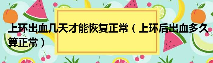 大家好,今天小六子来为大家解答以下的问题,关于上环出血几天才能恢复正常,上环后出血多久算正常这个很多人还不知道,现在让我们一起来看看吧!