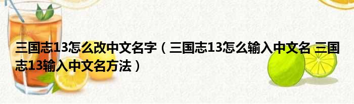 大家好,今天小六子来为大家解答以下的问题,关于三国志13怎么改中文名字,三国志13怎么输入中文名 三国志13输入中文名方法这个很多人还不知道,现在让我们一起来看看吧!