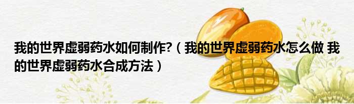 大家好,今天小六子来为大家解答以下的问题,关于我的世界虚弱药水如何制作?,我的世界虚弱药水怎么做 我的世界虚弱药水合成方法这个很多人还不知道,现在让我们一起来看看吧!