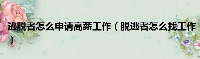 大家好,今天小六子来为大家解答以下的问题,关于逃脱者怎么申请高薪工作,脱逃者怎么找工作这个很多人还不知道,现在让我们一起来看看吧!