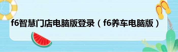 大家好,今天小六子来为大家解答以下的问题,关于f6智慧门店电脑版登录,f6养车电脑版这个很多人还不知道,现在让我们一起来看看吧!