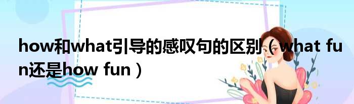 大家好,今天小六子来为大家解答以下的问题,关于how和what引导的感叹句的区别,what fun还是how fun这个很多人还不知道,现在让我们一起来看看吧!