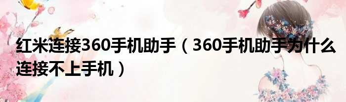 大家好,今天小六子来为大家解答以下的问题,关于红米连接360手机助手,360手机助手为什么连接不上手机这个很多人还不知道,现在让我们一起来看看吧!