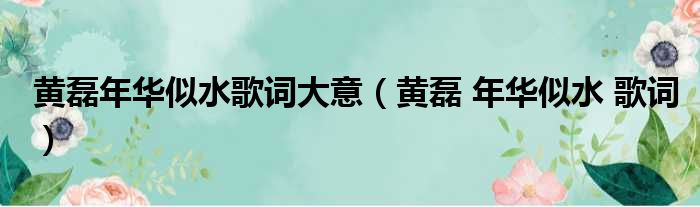大家好,今天小六子来为大家解答以下的问题,关于黄磊年华似水歌词大意,黄磊 年华似水 歌词这个很多人还不知道,现在让我们一起来看看吧!