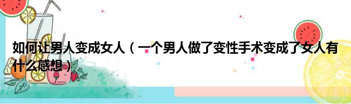 大家好,今天小六子来为大家解答以下的问题,关于如何让男人变成女人,一个男人做了变性手术变成了女人有什么感想这个很多人还不知道,现在让我们一起来看看吧!