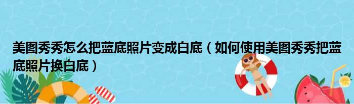 大家好,今天小六子来为大家解答以下的问题,关于美图秀秀怎么把蓝底照片变成白底,如何使用美图秀秀把蓝底照片换白底这个很多人还不知道,现在让我们一起来看看吧!