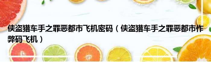 侠盗猎车手之罪恶都市飞机密码 侠盗猎车手之罪恶都市作弊码飞机 网络整理 经验 2023-04-24 16:48:31 大家好,今天小六子来为大家解答以下的问题,关于侠盗猎车手之罪恶都市飞机密码,侠盗猎车手之罪恶都市作弊码飞机这个很多人还不知道,现在让我们一起来看看吧!1、飞机代码:cjuhyikerools。本文分享完毕,希望对你有所帮助。 声明:免责声明:本文来源网友投稿及网络整合仅代表文章作者的个人观点,与本站无关。其原创性、真实性以及文中陈述文字和内容未经本站证实,对本文以及其中全部或者部分内容文字的真实性、完整性和原创性本站不作任何保证或承诺,请读者仅作参考,并自行核实相关内容。投诉邮箱:1765130767@qq.com。 本文地址:https://www.anfu123.com/jingyan/19961.html