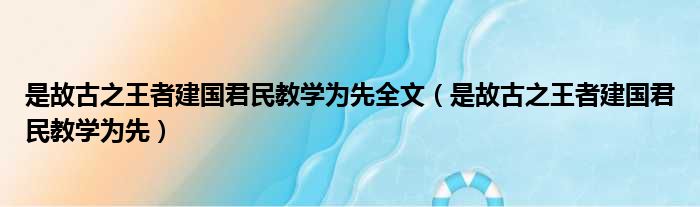 大家好,今天小六子来为大家解答以下的问题,关于是故古之王者建国君民教学为先全文,是故古之王者建国君民教学为先这个很多人还不知道,现在让我们一起来看看吧!