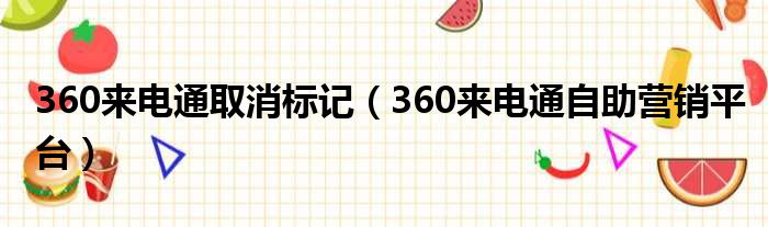 大家好,今天小六子来为大家解答以下的问题,关于360来电通取消标记,360来电通自助营销平台这个很多人还不知道,现在让我们一起来看看吧!