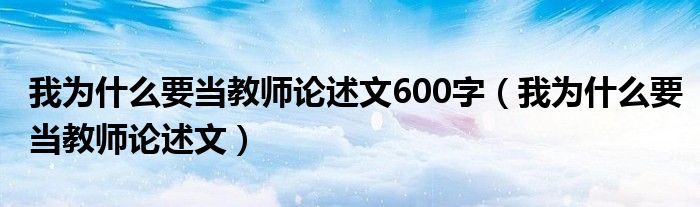 大家好,今天小六子来为大家解答以下的问题,关于我为什么要当教师论述文600字,我为什么要当教师论述文这个很多人还不知道,现在让我们一起来看看吧!