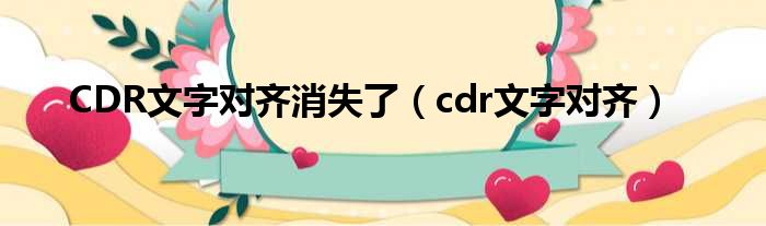 大家好,今天小六子来为大家解答以下的问题,关于CDR文字对齐消失了,cdr文字对齐这个很多人还不知道,现在让我们一起来看看吧!