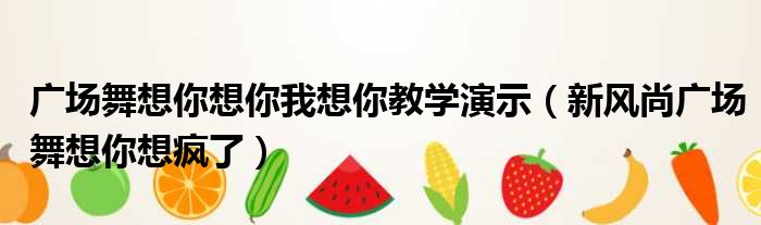 大家好,今天小六子来为大家解答以下的问题,关于广场舞想你想你我想你教学演示,新风尚广场舞想你想疯了这个很多人还不知道,现在让我们一起来看看吧!