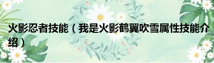 大家好,今天小六子来为大家解答以下的问题,关于火影忍者技能,我是火影鹤翼吹雪属性技能介绍这个很多人还不知道,现在让我们一起来看看吧!