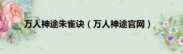 大家好,今天小六子来为大家解答以下的问题,关于万人神途朱雀诀,万人神途官网这个很多人还不知道,现在让我们一起来看看吧!