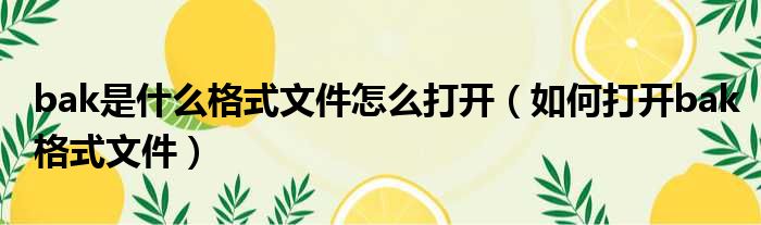 大家好,今天小六子来为大家解答以下的问题,关于bak是什么格式文件怎么打开,如何打开bak格式文件这个很多人还不知道,现在让我们一起来看看吧!