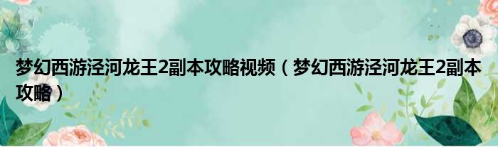 大家好,今天小六子来为大家解答以下的问题,关于梦幻西游泾河龙王2副本攻略视频,梦幻西游泾河龙王2副本攻略这个很多人还不知道,现在让我们一起来看看吧!