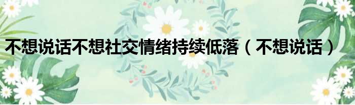 大家好,今天小六子来为大家解答以下的问题,关于不想说话不想社交情绪持续低落,不想说话这个很多人还不知道,现在让我们一起来看看吧!