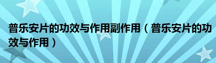 大家好,今天小六子来为大家解答以下的问题,关于普乐安片的功效与作用副作用,普乐安片的功效与作用这个很多人还不知道,现在让我们一起来看看吧!