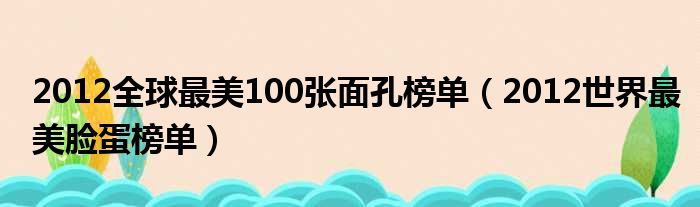 大家好,今天小六子来为大家解答以下的问题,关于2012全球最美100张面孔榜单,2012世界最美脸蛋榜单这个很多人还不知道,现在让我们一起来看看吧!