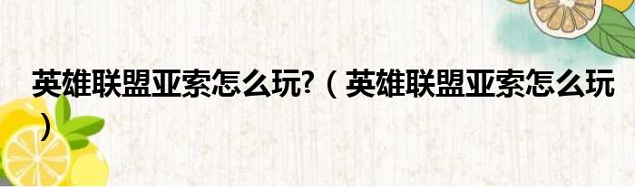 大家好,今天小六子来为大家解答以下的问题,关于英雄联盟亚索怎么玩?,英雄联盟亚索怎么玩这个很多人还不知道,现在让我们一起来看看吧!