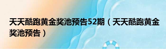 大家好,今天小六子来为大家解答以下的问题,关于天天酷跑黄金奖池预告52期,天天酷跑黄金奖池预告这个很多人还不知道,现在让我们一起来看看吧!