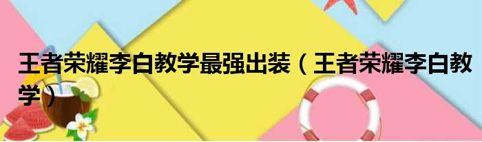大家好,今天小六子来为大家解答以下的问题,关于王者荣耀李白教学最强出装,王者荣耀李白教学这个很多人还不知道,现在让我们一起来看看吧!