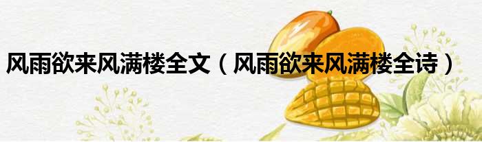 大家好,今天小六子来为大家解答以下的问题,关于风雨欲来风满楼全文,风雨欲来风满楼全诗这个很多人还不知道,现在让我们一起来看看吧!