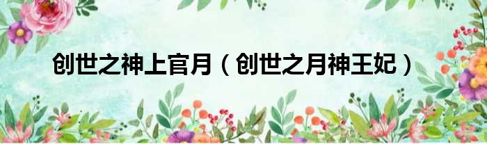 大家好,今天小六子来为大家解答以下的问题,关于创世之神上官月,创世之月神王妃这个很多人还不知道,现在让我们一起来看看吧!