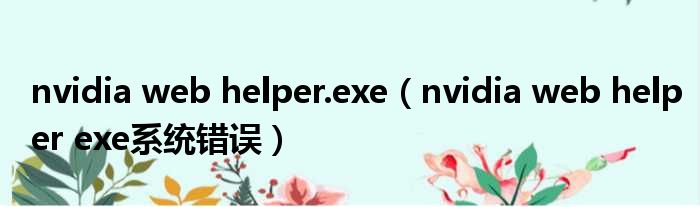 大家好,今天小六子来为大家解答以下的问题,关于nvidia web helper.exe,nvidia web helper exe系统错误这个很多人还不知道,现在让我们一起来看看吧!