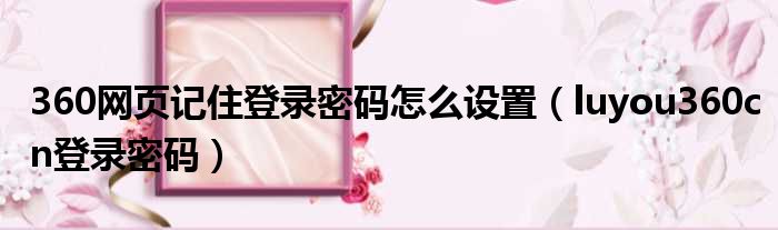大家好,今天小六子来为大家解答以下的问题,关于360网页记住登录密码怎么设置,luyou360cn登录密码这个很多人还不知道,现在让我们一起来看看吧!